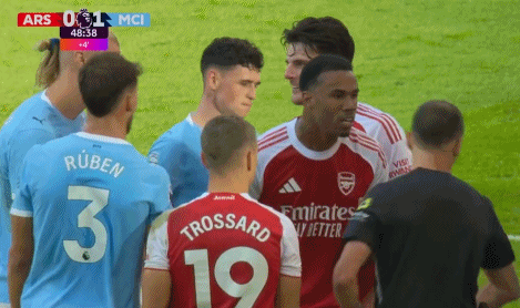 随后,双方球员一拥而上,至少10名球员围住主裁判争辩,加布里埃尔尤其愤怒,原因是他此前与席尔瓦发生冲突,后者因为报复性踢倒加布里埃尔而被黄牌警告。